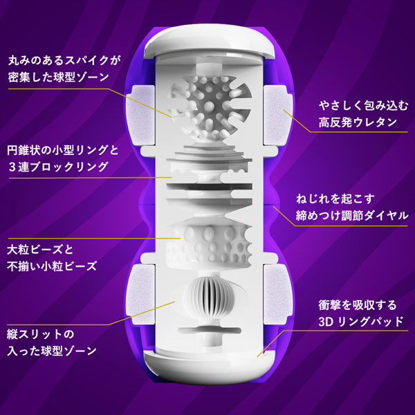 縦ヒダと放射線状に伸びたヒダはキツめの強い刺激を与えます。