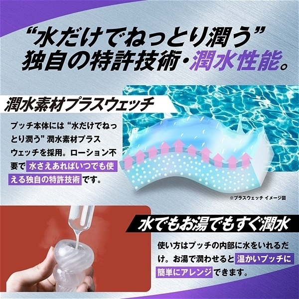 水をつけて軽く擦ることで内部の超ミクロサイズで閉じ込められた「潤いゼリー」が水に反応し、沁みだし樹脂表面をねっとりと潤い包みこみます。