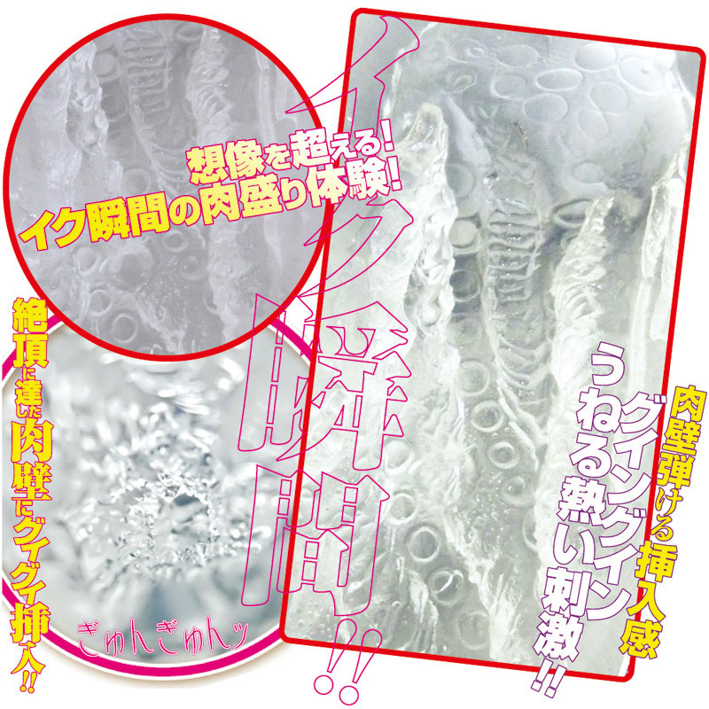 ホール特有のストレス臭をカットしたクリア素材を採用し、筋肉のこわばりによりギュッと締まった膣内をイメージ!弾けるような高弾力で、ねじれながらバキュームする極上のスパイラル構造。