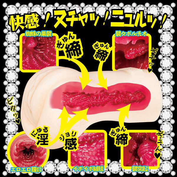 二層構造で仕上げた内部は、蜘蛛の巣状に張るイボヒダやイボ絨毯、ヒダ突起など凹凸刺激に特化!あおいの中を激しくピストンして一気にフィニッシュへ♪直筆サイン刻印入り、ローション付