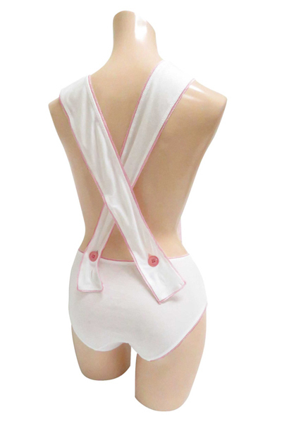お尻を包み込むフルバック仕様!サスペンダー付でウエスト周りのボタンで長さの調節が可能。