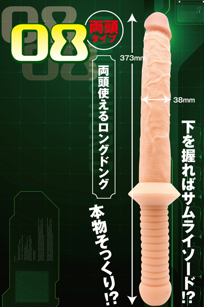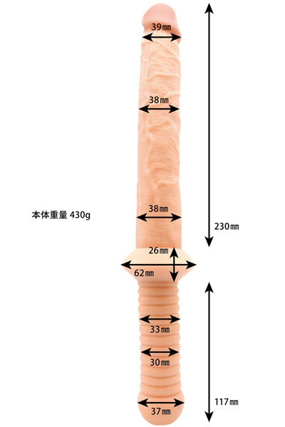 最大37cmを超える超ロングボディは、筋浮き立つ男根形状と刺激的な蛇腹デザインの両頭仕様!肉感&程よい弾力でボディをU字に曲げる事も可能。