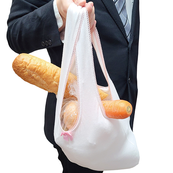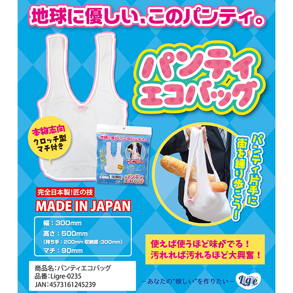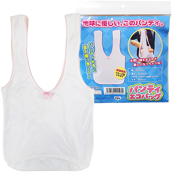 パンティ片手に街を練り歩く!?誰かとすれ違いざまに思わずドキッとさせてしまう「なんだかパンティっぽい見た目」が特徴のジョーク系グッズ「パンティエコバッグ」です。