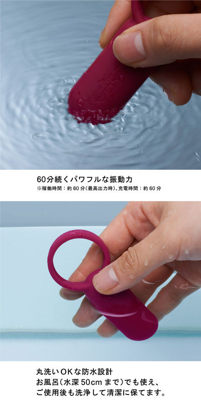 ●FDA認証済みで安全・赤いソフトシリコンを採用●リング直径31mm・適度に伸縮します●充電中はランプが点灯・60分のチャージで約60分間稼動●ワンボタン操作・5段階の強弱と2種類のパターンを搭載●水深50cmまでの生活防水加工●専用USBケーブル&ケース付き●水溶性ローションのみ併用可。