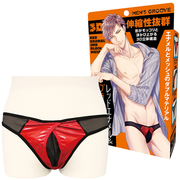 レッドエナメル&ブラックメッシュ3Dショーツ