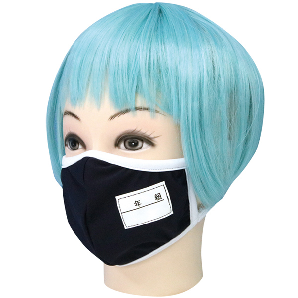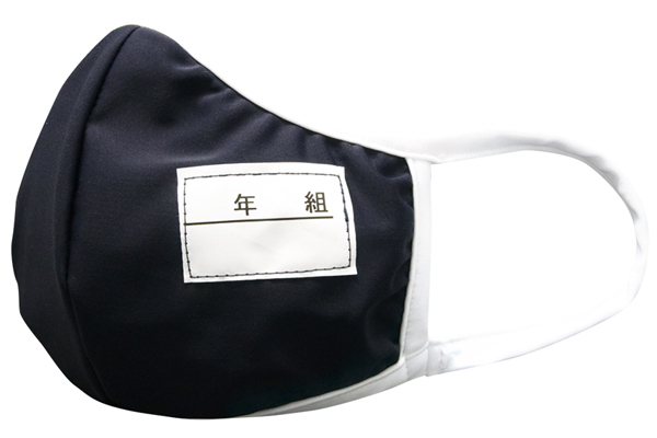 ゼッケン入りの本格派仕様!伸縮性に優れたネイビーのスク水素材に白パイピングを施した正統派スクール水着風のユニークな立体マスク。