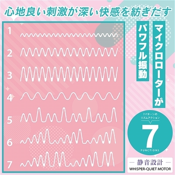 ピンポイントで敏感部分を刺激!ハイパワー&静音設計、マイクロローターがパワフル振動、7パターンのリズムアクション。
