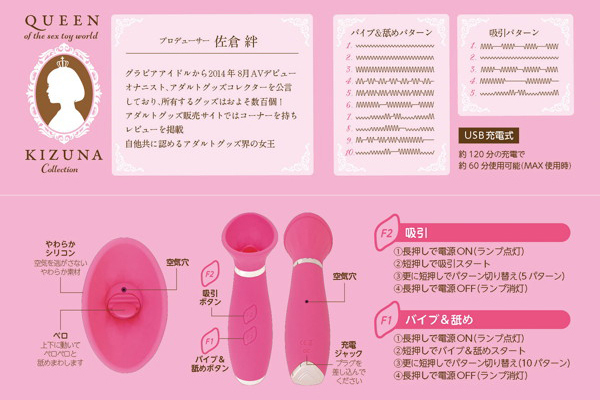 アダルトグッズコレクター、きずぽんこと元AV女優「佐倉絆」がプロデュース♪バキューム&舐めの2つの刺激を体感できるUSB充電式の可愛い吸引ローター。