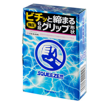 ビチッと締まる強圧!まるでギュッと握られているような締め付け感のサガミブランドコンドーム「SQUEEZE(スクイーズ)」5個入。