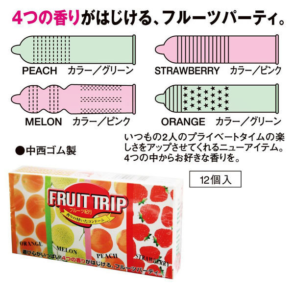 遊びゴコロ満載!4つの香りがはじけるフルーツフレーバー付きバラエティコンドーム「フルーツ紀行 12個入り」。