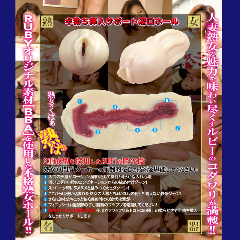 ●RUBYオリジナル素材「BBA」使用●女優自らプロデュースした至高作●色白モチ肌×熟した内部の2重成型●半勃起でも受け入れる淫乱入り口●溝ヒダ&ツブツブの締め付け膣道●経験豊富なちょいユル中盤ゾーン●子宮手前のコリコリ最奥で昇天。