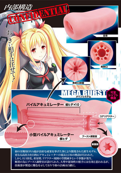 まるで回転拳銃の弾倉のような内部があなたの竿を刺激する「ona砲 mega burst」!縦のロングひだと横の浅いひだが楽しめる非貫通型オナホが登場。