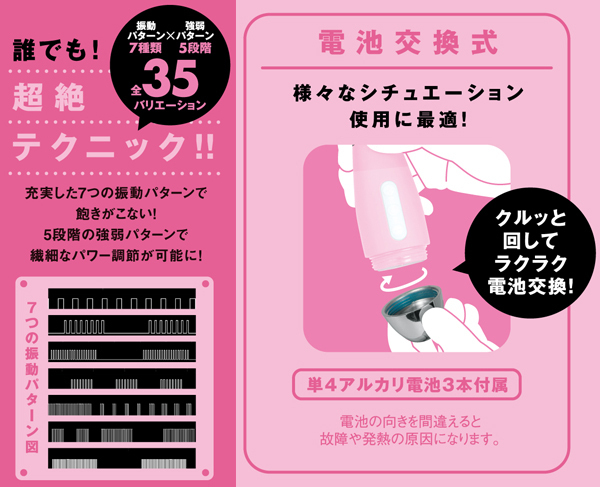 最強の電マ、降臨!振動パターン7種類!強弱パターン5段階!全35バリエーションの多機能!使い勝手のいいちょうどいいサイズと軽さで実用性を向上させました。
