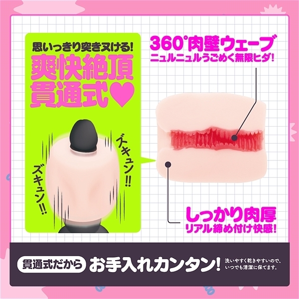 突きヌける快感!爽快絶頂の貫通式ホール!ニュルニュルうごめく無限ヒダの超リアル肉壁ウェーブ!ずっしり肉厚の重量約300g!ギュギュッと締め付けるリアル挿入感!使うほどに成長する革命的素材「momochi」素材使用しています。