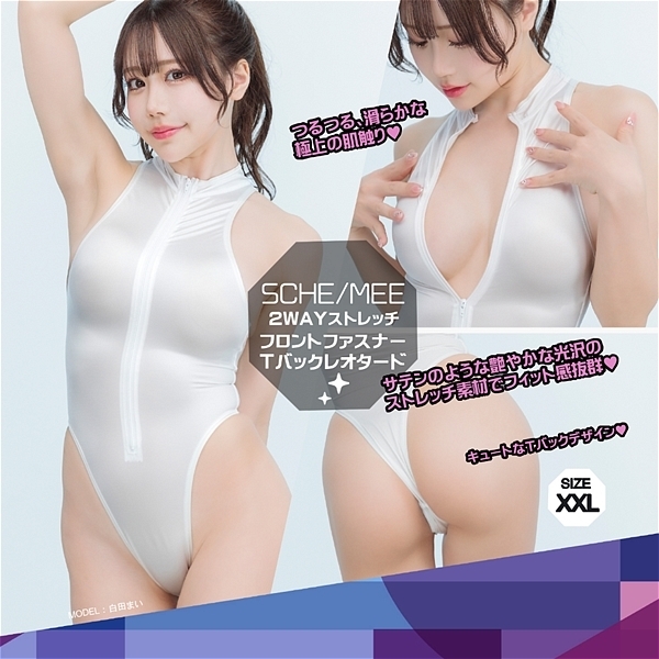 FittySatinフロントファスナーレオタード (WHITE XXL)