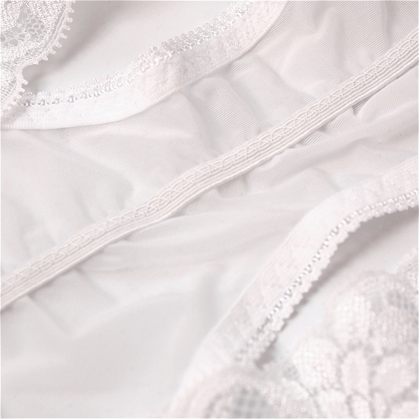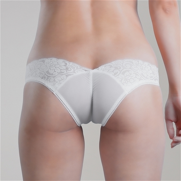 日本国内の工場で縫製され、国産のストレッチレースと伸縮性と透明性の高いストレッチ生地を組み合わせたハーフバックショーツです。