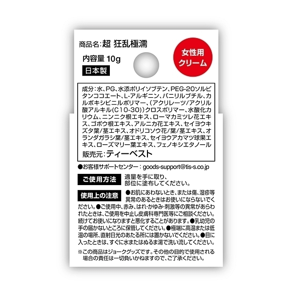 読んで字のごとし!彼女がイキイキ、ヌレヌレのマル秘処方!大好評の「狂乱極濡クリーム」が、お肌に嬉しい各種植物エキス配合でスーパーパワーアップ!安心安全の純国産!!