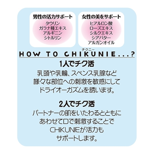 格別なチクニーことチクオナのために研究を重ね、独自配合した成分で安心安全の快感をお約束。