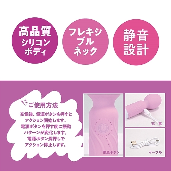 驚く程肌触りが滑らかな高品質シリコン素材にフレキシブルネックと静音なのにパワフルな高性能モーターを搭載したコンパクトサイズデンマです。