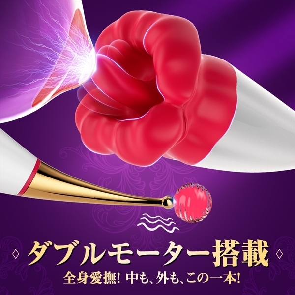 2つの一点集中に狂わされる充電式ハイブリッドローター「CRAZY LIP」は、クリ舐めとスティック型を融合させた究極のアイテム♪それぞれ個別操作が可能で、付属アタッチメントを使えば攻め方も自由自在!USB充電式で生活防水仕様なので、お手入れも簡単です♪10種類の舌舐めパターンと10種類の振動モードを搭載し、本物の触感を再現した柔らかい唇が、全身を舐め回すような絶頂体験を提供します。