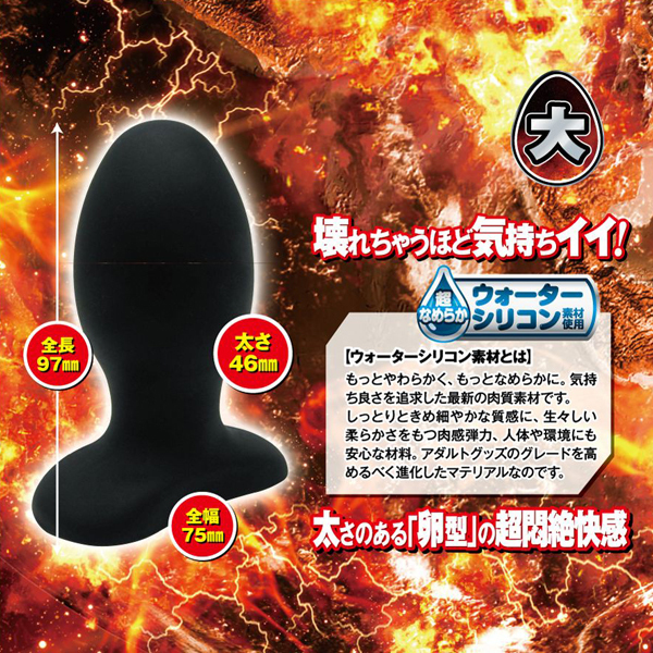 卵型が生み出す、超破壊的な尻穴悶絶快感をお楽しみください!さらに、使用素材にもこだわりました!破壊的な気持ち良さを加速させる、最新素材「ウォーターシリコン」を使用!もっとやさしく、もっとなめらかに。