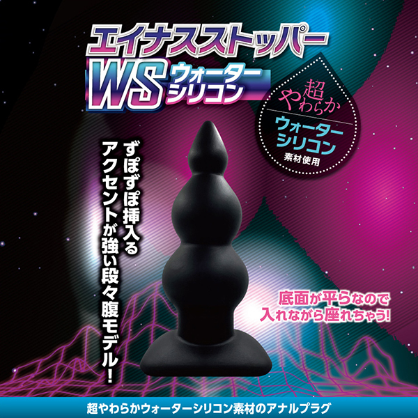 ビギナーからマニアまで楽しめるアナルストッパーが最新素材になって新登場!こちらの「エイナスストッパー WSウォーターシリコン (06)」は3段階を経て徐々に太くなるアナルボールが、挿入すると穴中を押し拡げながら快感を味わわせてくれます。