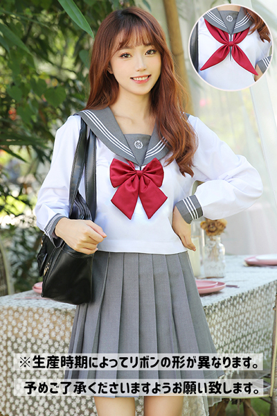 <malymoon>赤リボン長袖セーラー服(グレー)