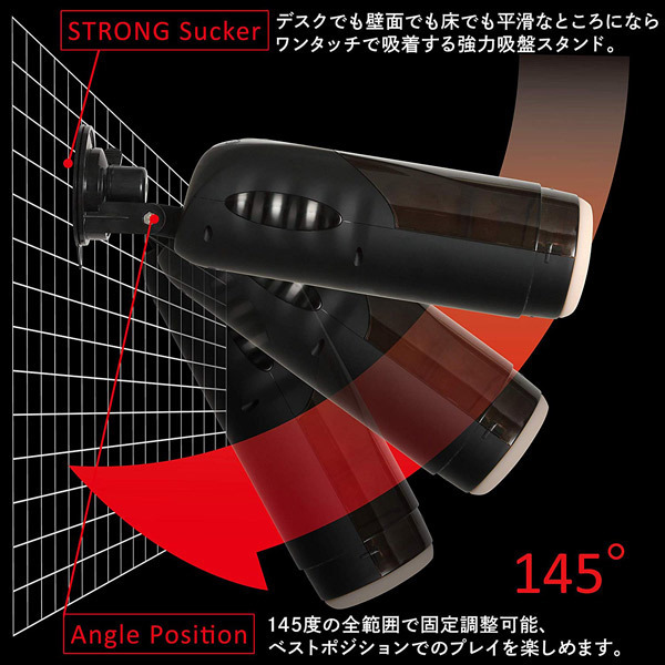 10段階×10段階のスピード&ピストン調節が可能で、選べる幅は100種類!さらに極太ヒダや無数のヒダによる刺激を、ワンタッチで吸着できる強力吸盤で、机や床に張り付ければハンズフリーで楽しめます♪また、人肌感が味わえる温感機能、喘ぎ声3名分が聴けるボイス機能等、性活を充実させる要素が満載!使用後は分解しての洗浄が可能で、3時間の充電でおよそ2時間使用可能。